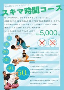 ご来店(ご予約時間)から退店まで『50分で完結』できるタイ古式マッサージコースです!