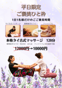 初回のお客様には60分以上のコースが 【500円割引】でご利用頂けます!