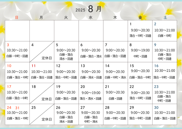 8月もどうぞよろしくお願い致します。